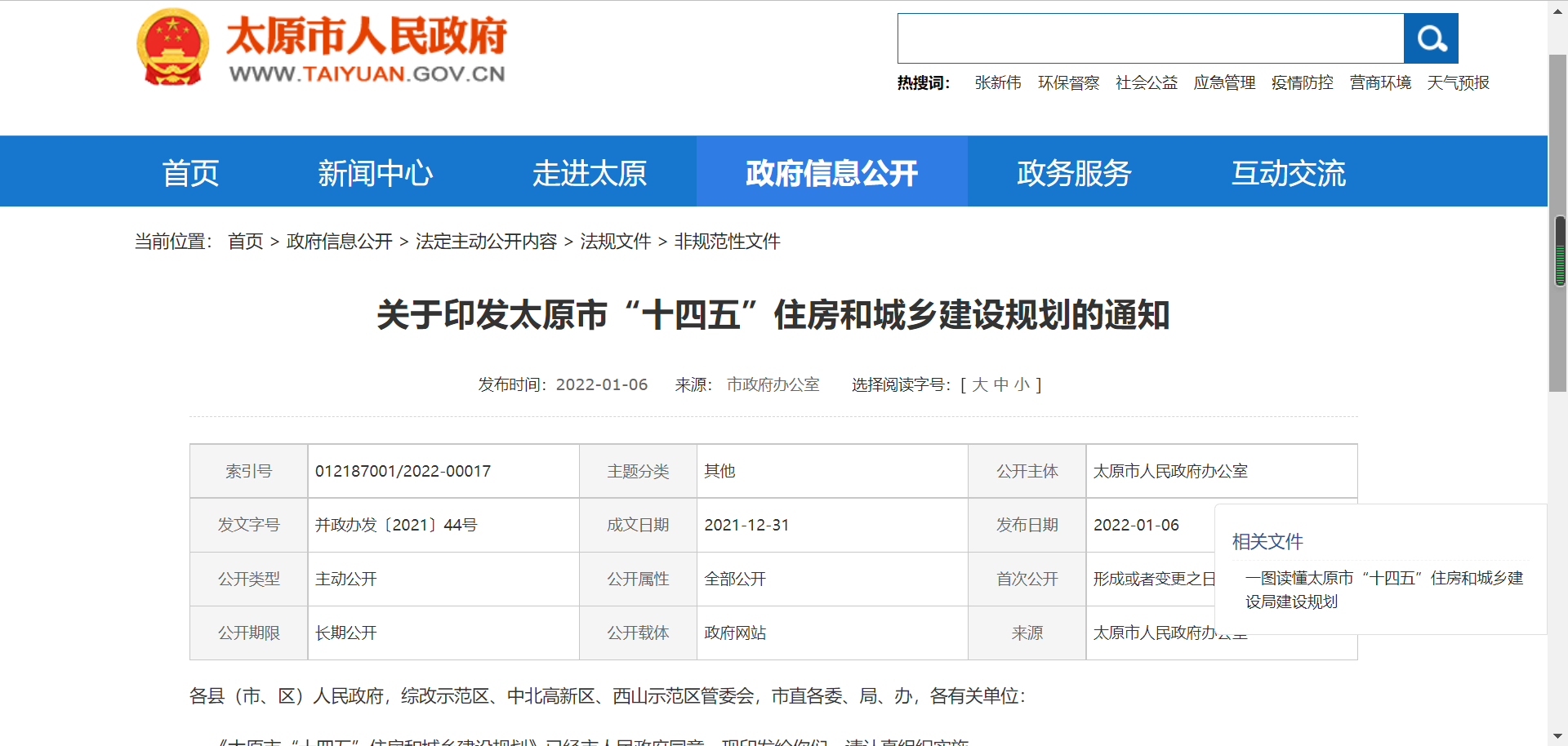 點擊藍字關注我們泰華遠大做最精心的裝配式建筑企業,成就精彩員工夢想。太原市人民政府關于印發“十四五”住房和城鄉建設規劃的通知并政辦發〔2021〕44號各縣(市、區)人民政府,綜改示范區、中北高新區、西山示范